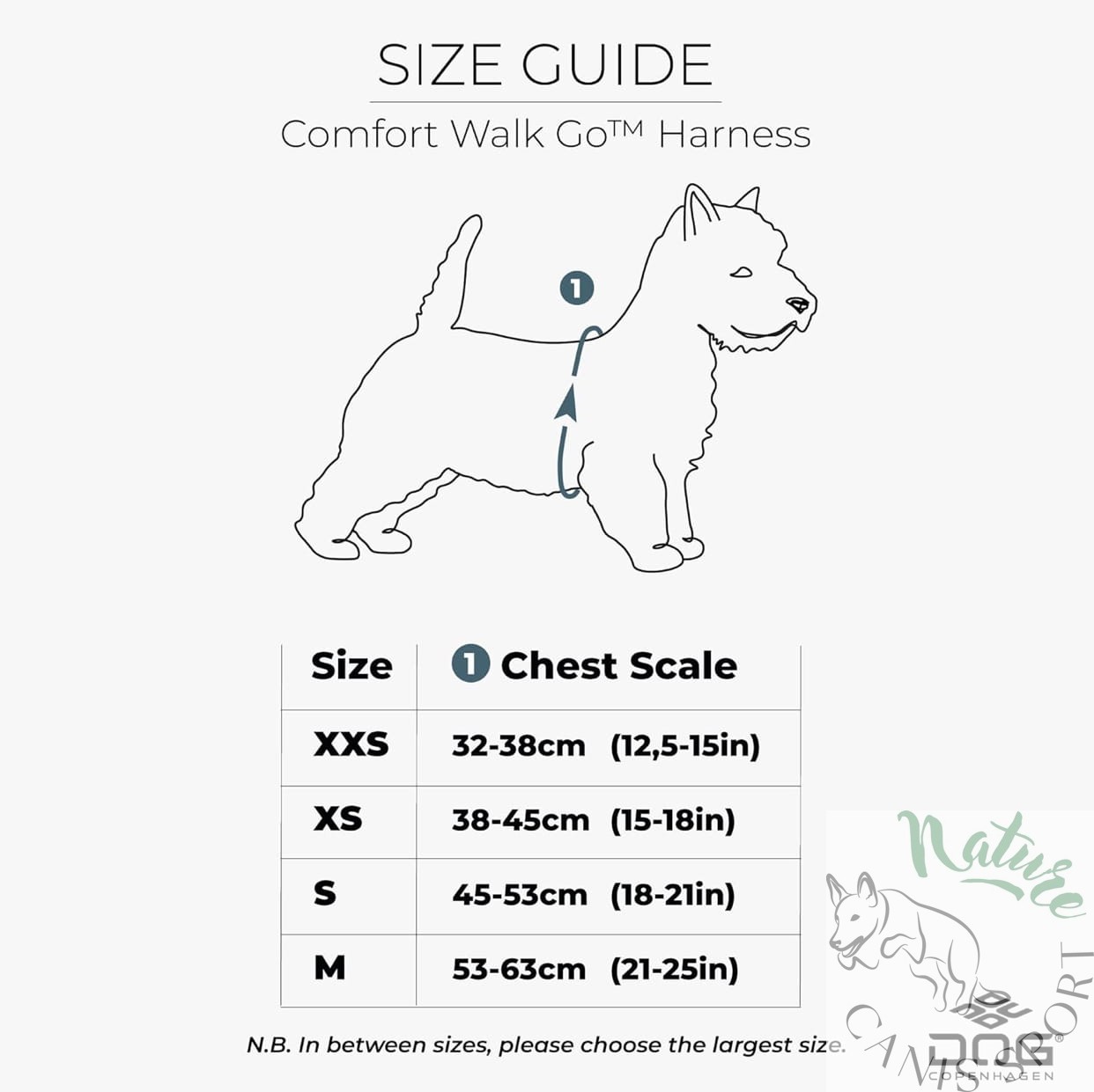 Zmierz swojego psa zgodnie z opisem i porównaj go z naszą tabelą rozmiarów. Jeśli wynik mieści się pomiędzy dwoma rozmiarami, zawsze wybierz większą możliwość