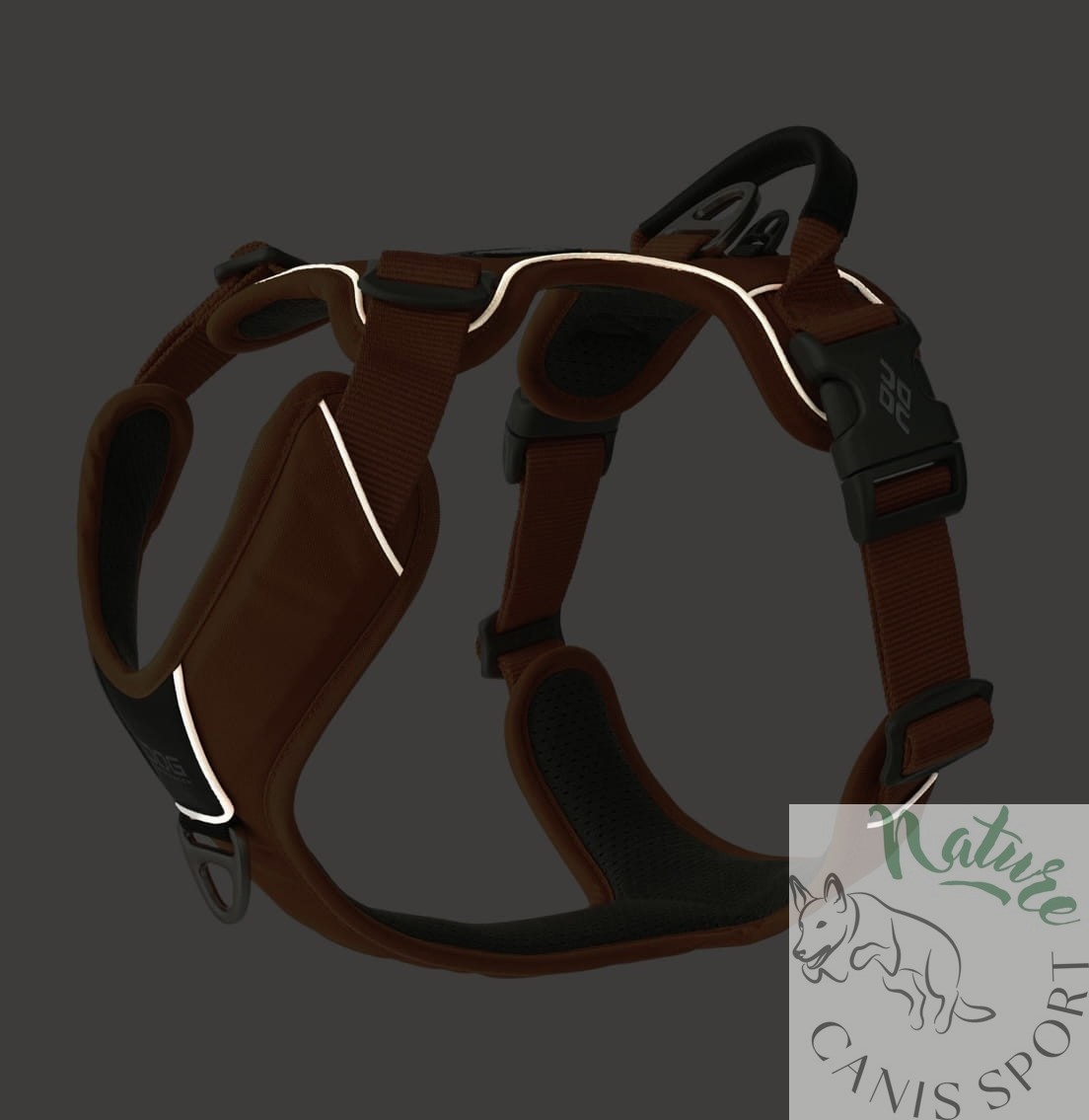 Istnieją dwie możliwości mocowania smyczy – jedna na plecach psa na codzienne spacery, a druga na klatce piersiowej psa do celów treningowych – zapewniają dodatkową kontrolę i elastyczność.
