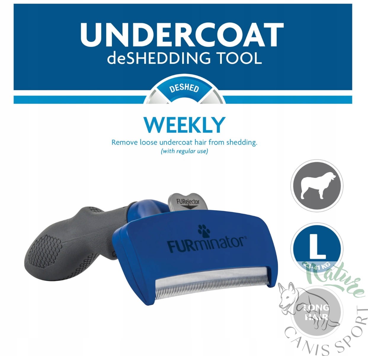 • FURminator do krótkiej sierści rozmiar L przeznaczony jest dla psów od 23 do 41 kg, włos dłuższy niż 5 cm