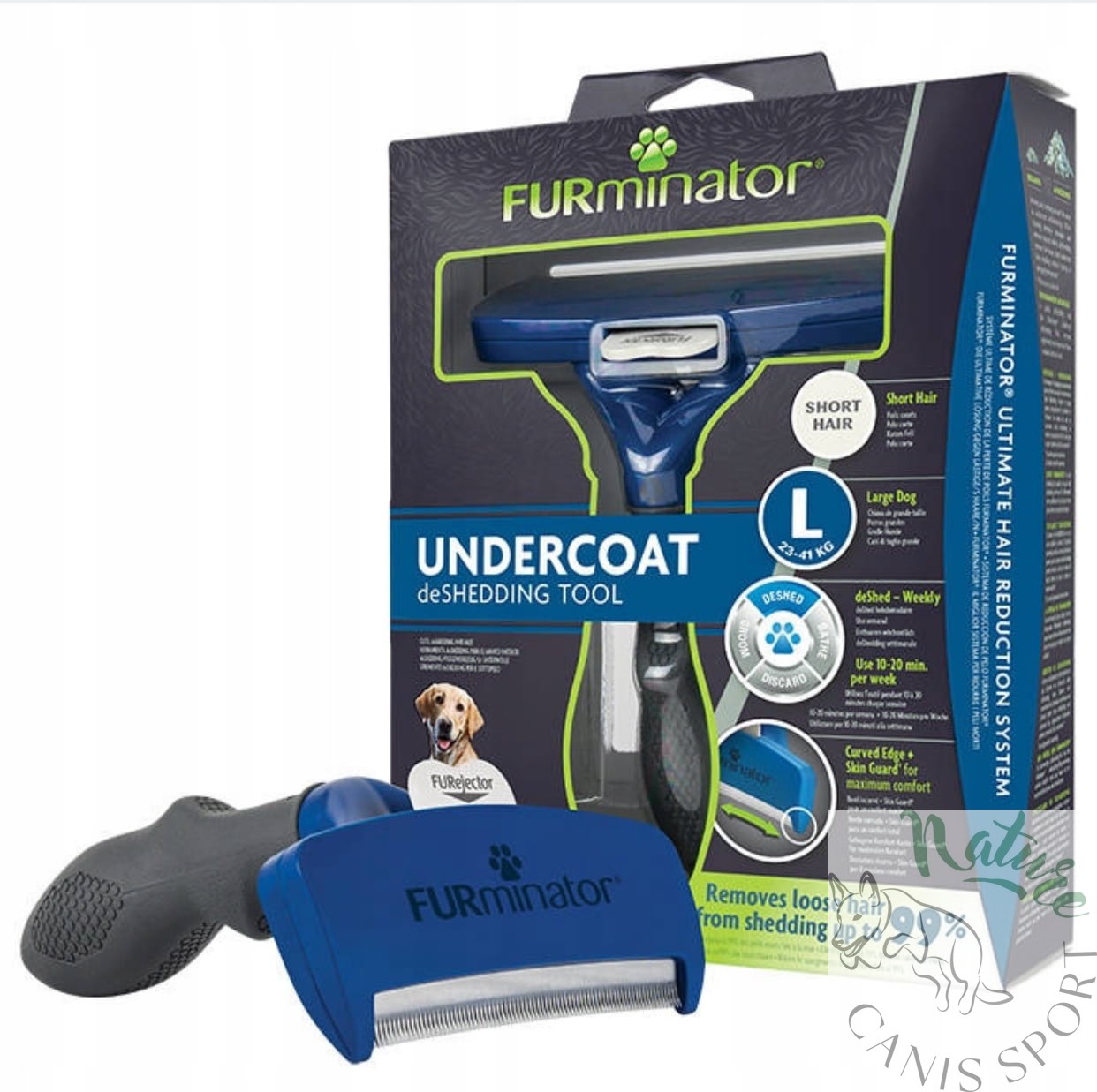 • FURminator do krótkiej sierści rozmiar L przeznaczony jest dla psów od 23 do 41 kg, włos krótszy niż 5 cm