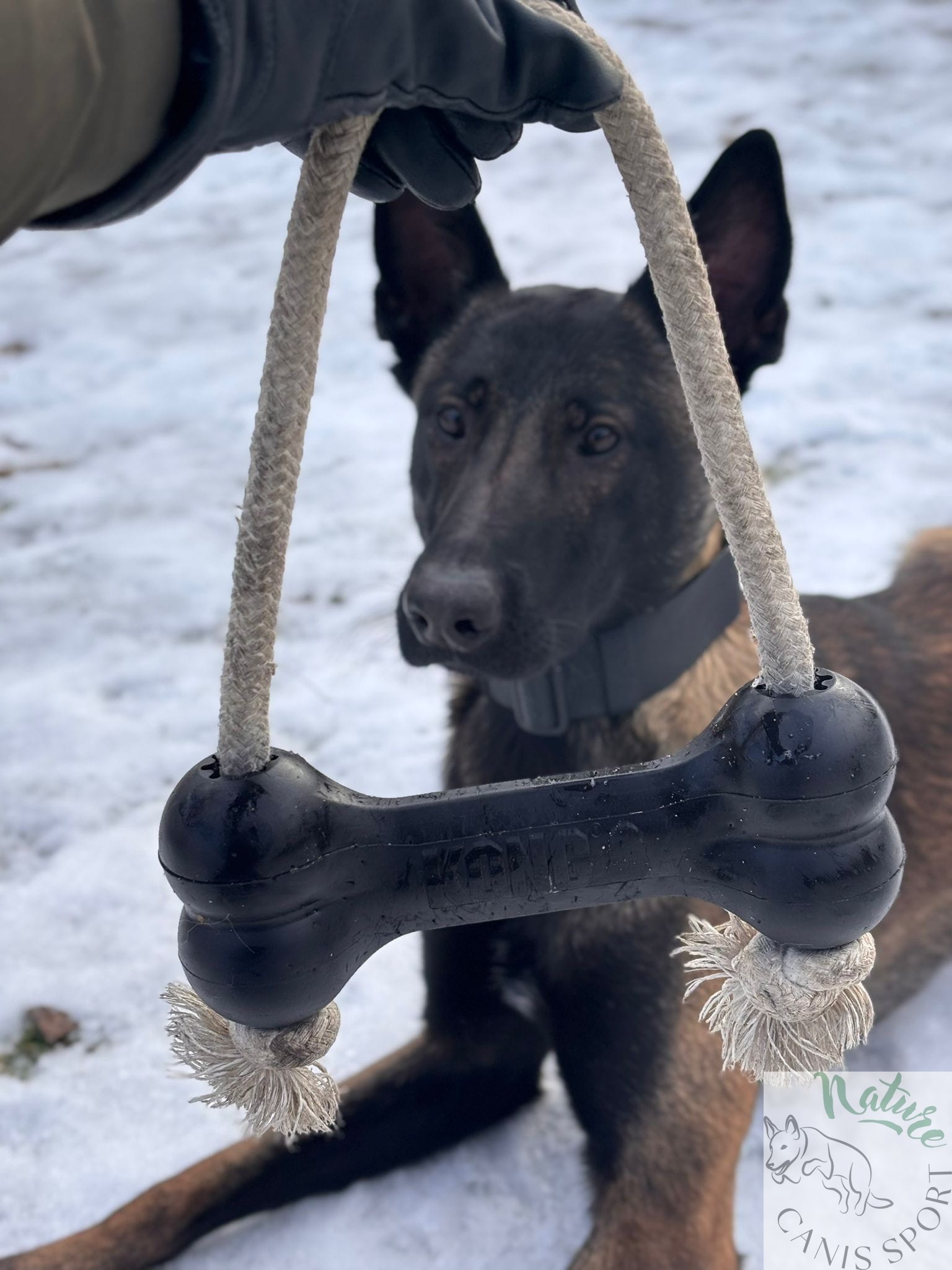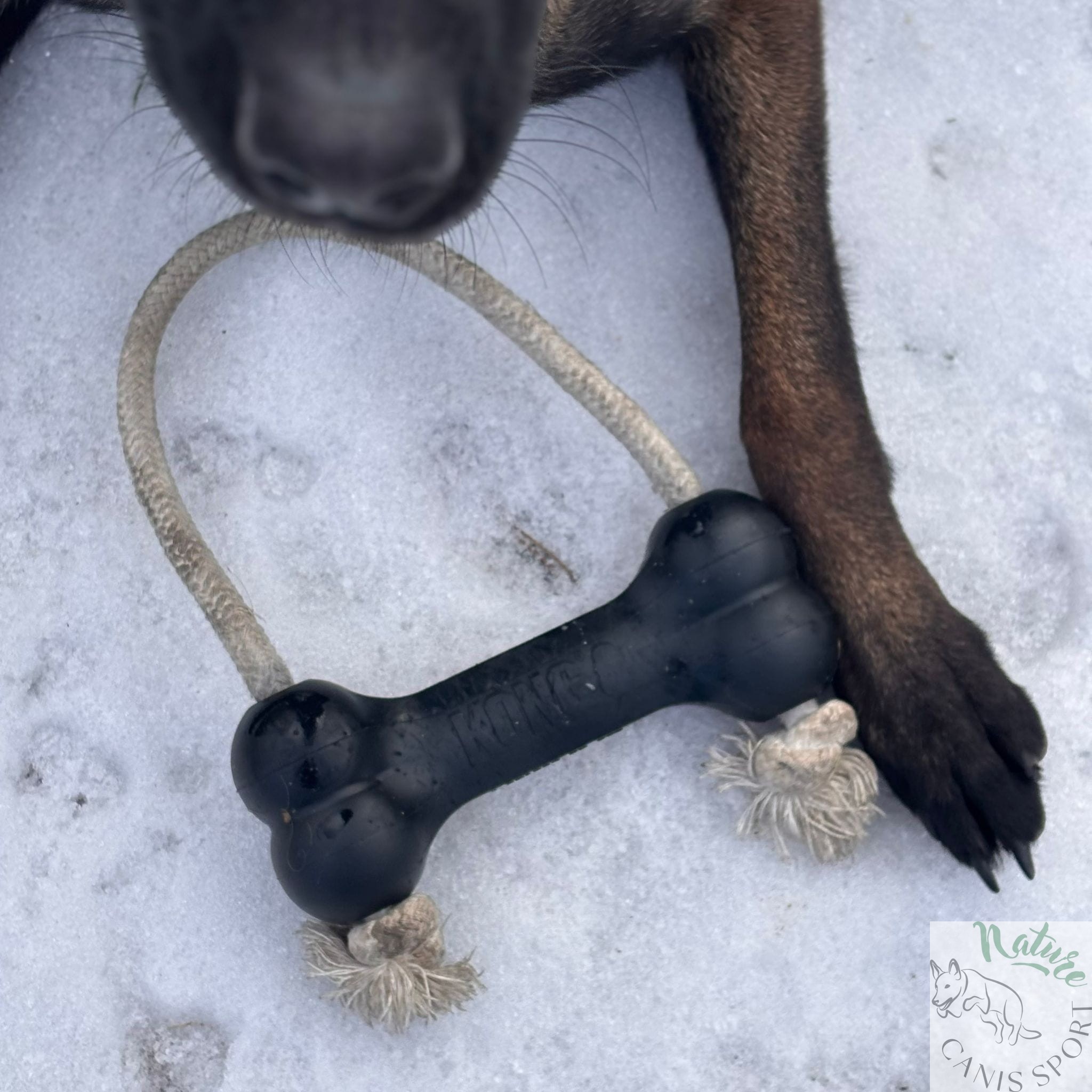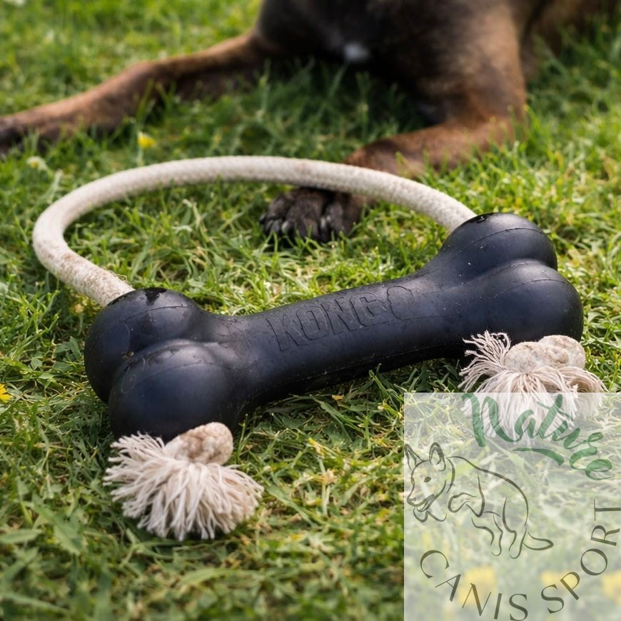 Kong Extreme Goodie Bone - kość ze sznurem - wytrzymała gumowa zabawka w kształcie kości z sznurem do przeciągania.