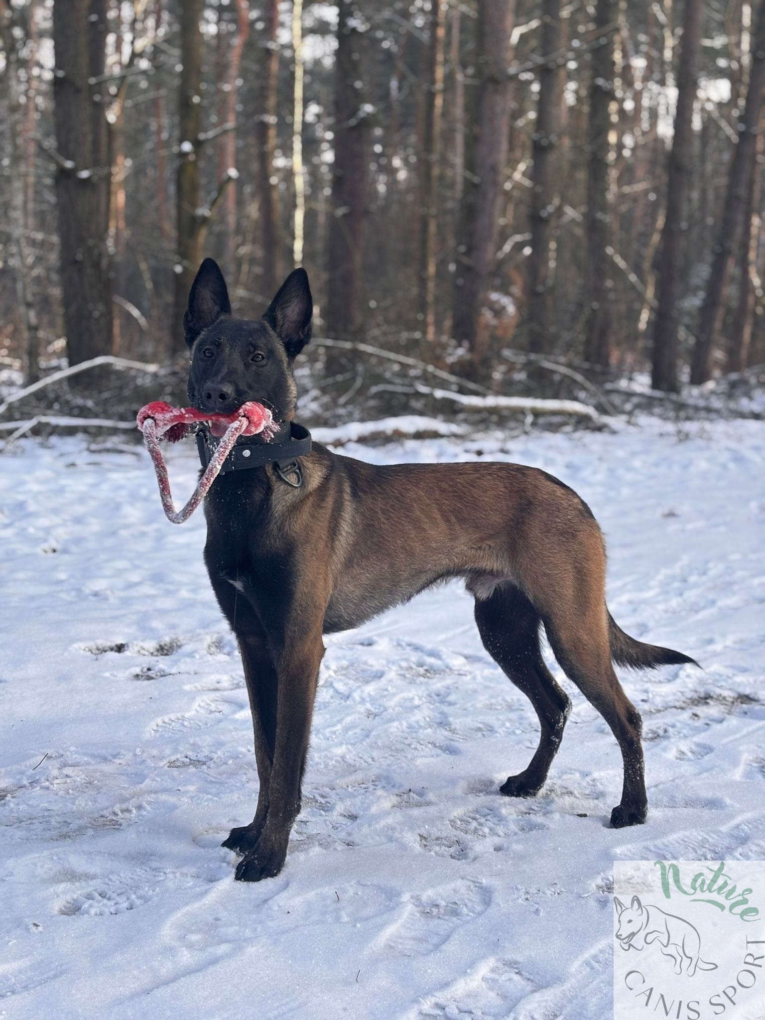 Zabawka wykonana z naturalnej gumy, a sznur z naturalnej bawełny.