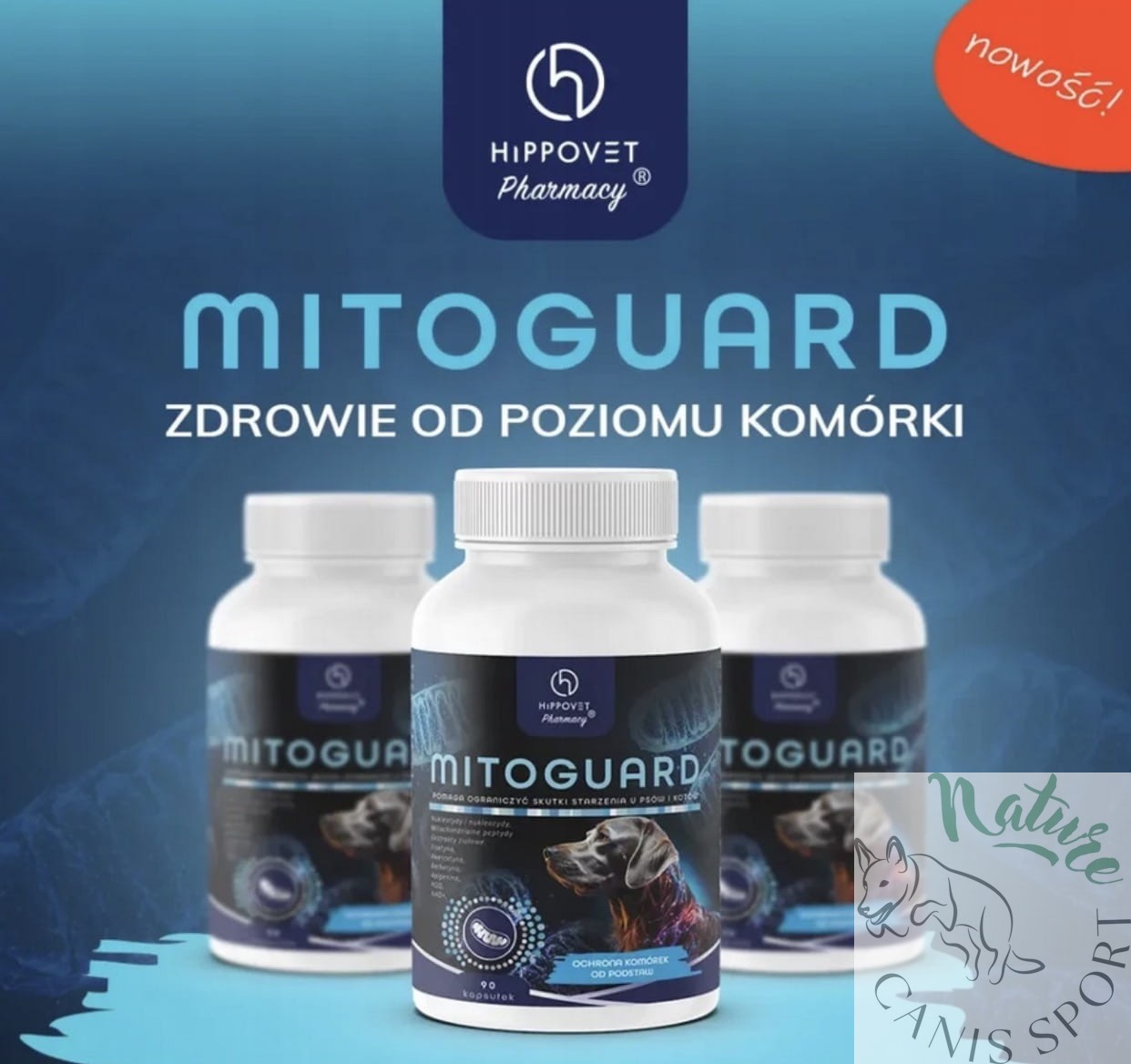 Hippovet Pharmacy MitoGuard to innowacyjny suplement diety dla psów i kotów, zaprojektowany w celu ochrony mitochondriów – kluczowych struktur komórkowych odpowiedzialnych za produkcję energii.