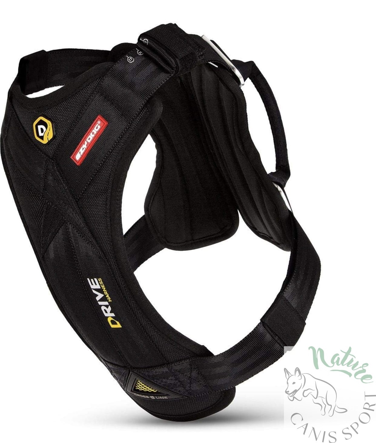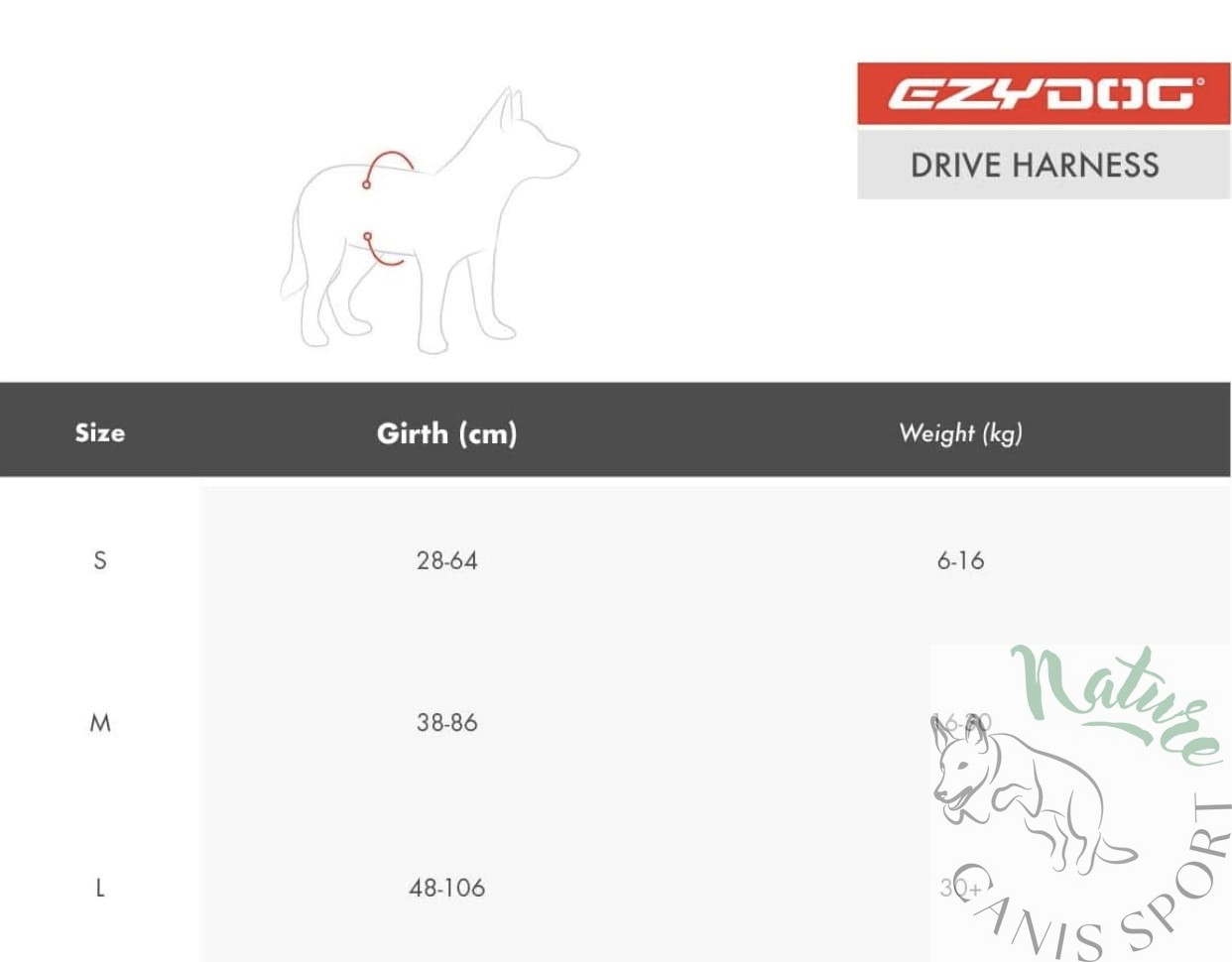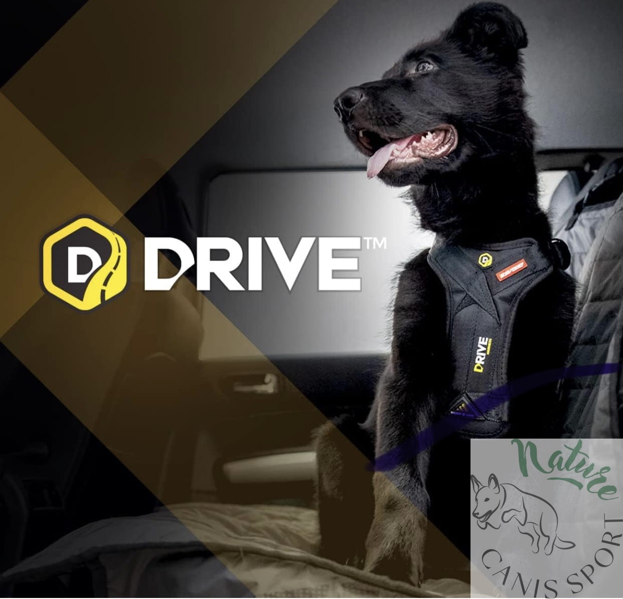 Regulowane szelki samochodowe EzyDog DRIVE do bezpiecznego przewożenia psa w samochodzie.