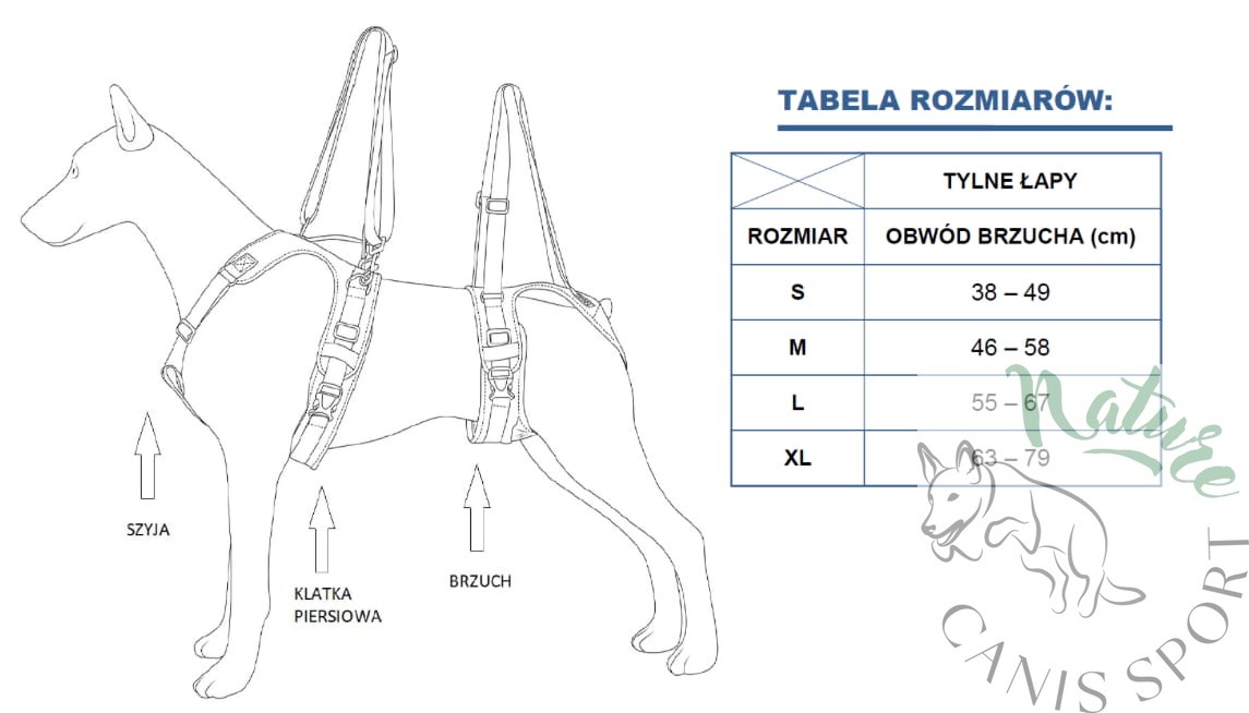 Szelki rehabilitacyjne na tylnie łapy psa